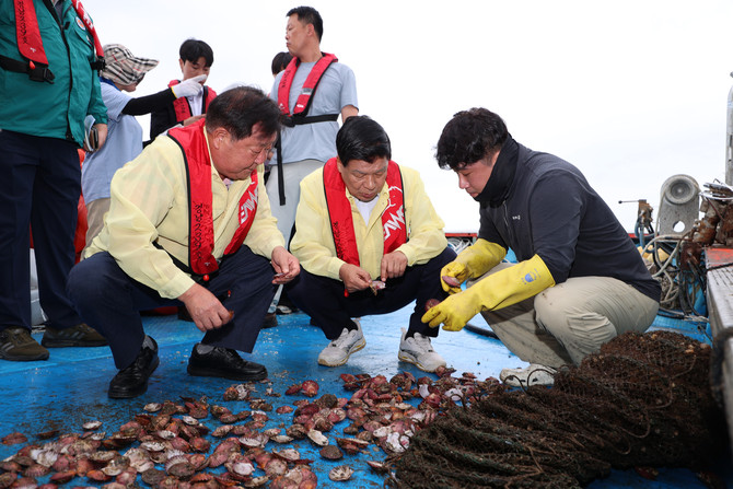 ■ 이상근 고성군수 '굴·가리비 피해 양식장 현장' 긴급 방문