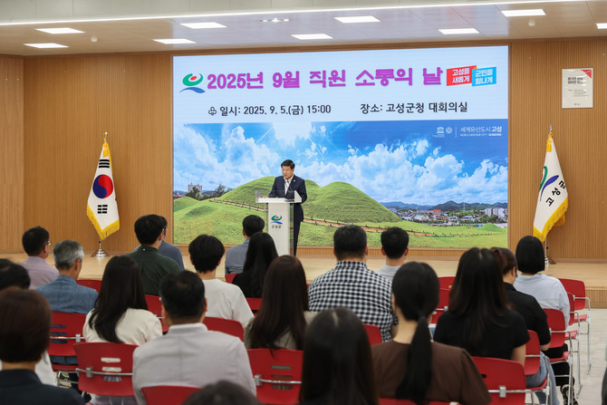 고성군(군수 이상근)은 지난 9월5일, 군청 대회의실에서 직원 150여명이 참석한 가운데 9월 직원 소통의 날을 개최했다고 8일 밝혔다.