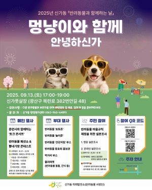 '멍냥이와 함께 안녕하신가'는 13일 광산구 신가풋살장(광산구 목련로 382번안길 48)에서 열린다. 오후 5시부터 신가풋살장에서 진행되는 축제는 다채로운 프로그램으로 주목받고 있다.