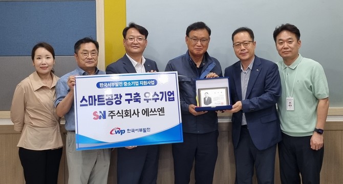 서부발전은 9일 충남 서산 소재 ㈜에쓰엔(대표 임채웅)을 방문해 스마트공장 구축 운영성과를 점검하고 애로사항을 청취했으며, 우수기업으로 선정된 해당 기업에 감사패를 전달했다.