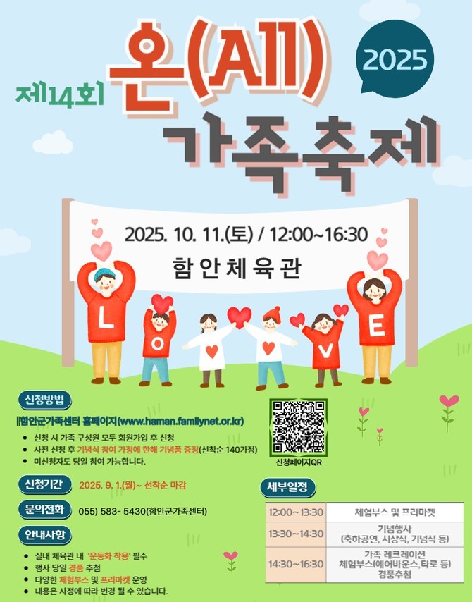 함안군가족센터 조은옥 센터장은 "온가족 축제는 세대와 가족의 형태를 넘어 모두가 함께 어울리는 자리로, 군민들이 즐겁게 참여하고 서로를 격려하는 기회가 되기를 기대한다"며 "앞으로도 가족의 건강성과 지역사회의 연대 강화를 위해 더욱 노력하겠다"고 말했다.