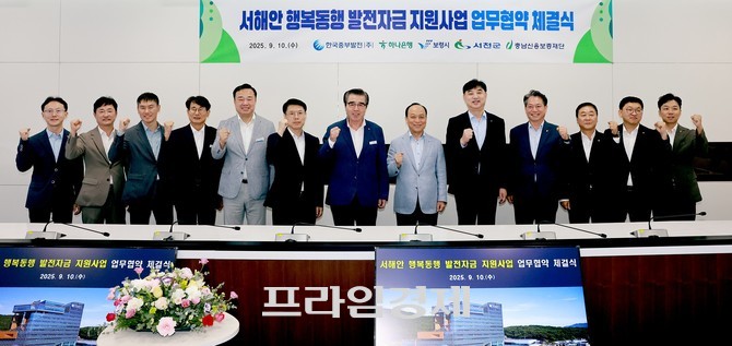 [프라임경제] 한국중부발전(사장 이영조)은 10일 충남 보령 본사에서 보령시, 서천군, 하나은행, 충남신용보증재단과 함께 '서해안 행복동행 발전자금 지원사업' 업무협약을 체결했다고 밝혔다.
