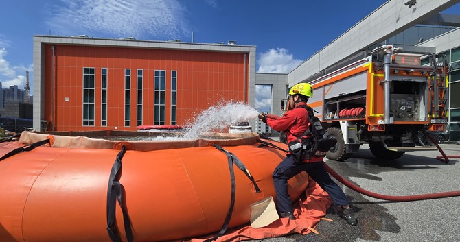 이번에 지원된 이동식저수조는 산불발생 시 담수지와 거리가 멀어 물 보급이 제한된 지역에서 산불진화헬기의 담수용으로 활용하는 장비로 진화 효율을 높이는 유용한 장비이다.