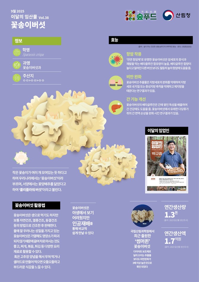 ■ "숲이 주는 항암 선물" 산림청 9월 이달의 임산물 '꽃송이버섯' 선정