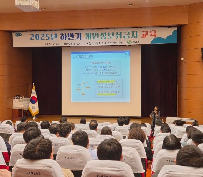 [프라임경제] 상주시(시장 강영석)는 지난 10일 상주시 청소년수련관 세미나실에서 '2025년 하반기 개인정보취급자 교육'을 개최했다.
