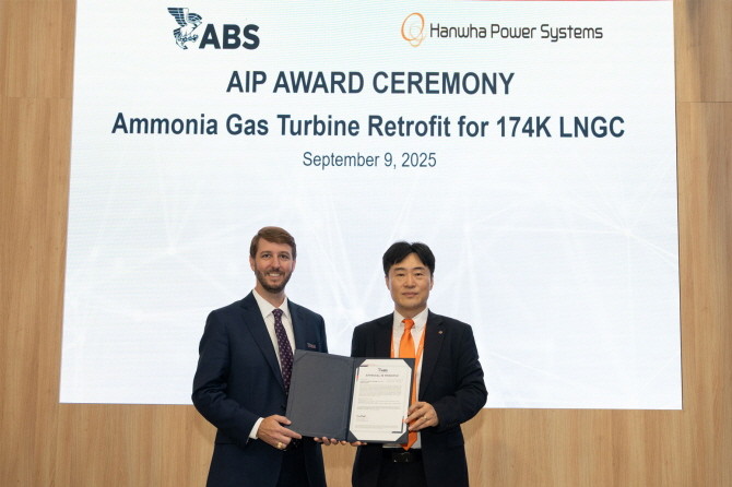 [프라임경제] 한화파워시스템은 가스텍(GASTECH) 2025에서 174K 액화천연가스(LNG) 운반선을 대상으로 한 암모니아 연료 가스터빈 개조 설계에 대해 미국선급협회(ABS)로부터 기본승인(AiP·Approval in Principle)을 획득했다고 11일 밝혔다.