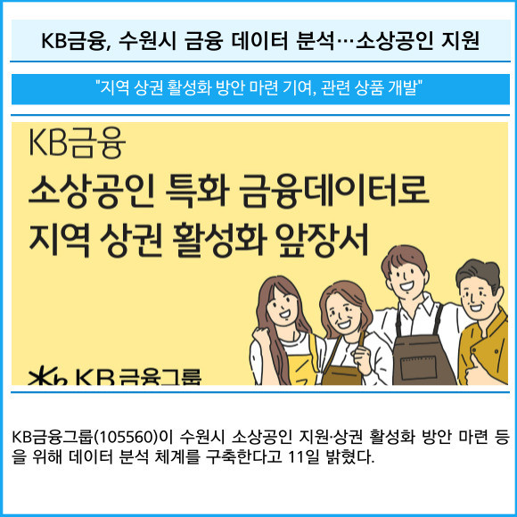 [프라임경제] KB금융그룹(105560)이 수원시 소상공인 지원·상권 활성화 방안 마련 등을 위해 데이터 분석 체계를 구축한다고 11일 밝혔다.