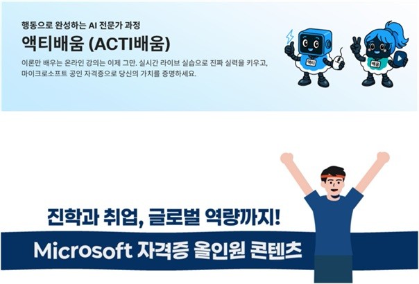 앞으로 액티배움은 클라우드 기반 AI·데이터·인프라·보안 분야로 콘텐츠를 확장할 계획이다. 특히 마이크로소프트 글로벌 공인 자격증 과정(AI900, AZ900, DP900, SC900)을 올인원 패키지로 제공한다. 이 과정은 △이론 학습 △기출문제 풀이 △모의고사 △실제 응시까지 전 과정을 지원해 취업·진학에 필요한 역량 강화를 돕는다.
