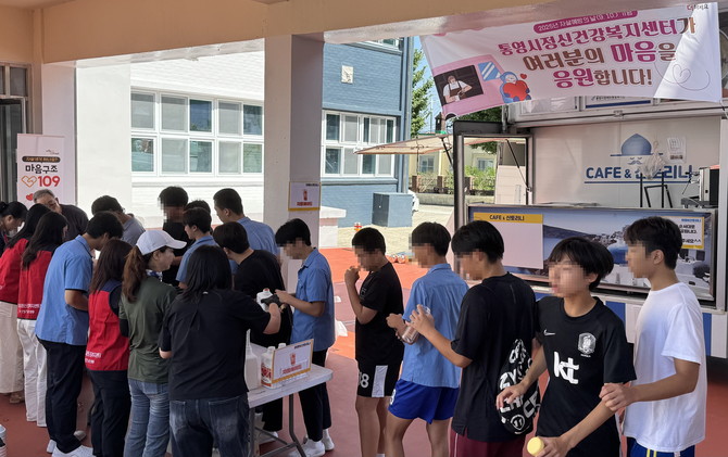 통영시는 세계 자살예방의 날(9월10일)을 맞아 지난 10일 통영중학교 전교생 대상 이동카페 '온정을 나누는 한 잔'을 운영하고 자살예방 생명지킴이 양성교육을 실시했다.