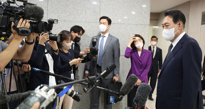 이런 가운데 이준석 국민의힘 대표에 대한 ’내부 총질‘ 관련 내용이 언급된 7월27일부터 약 일주일 간 도어스테핑을 하지 않았다. 그리고 취임 6개월 만인 2022년 11월21일부터는 완전 중단됐다. 이로 인해 집무실 이전에 대한 명분도 사라져 취임 연설에서 강조한 ’공정‘과 ’상식‘의 의미를 되새기게 만들었다.