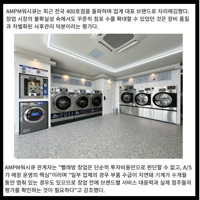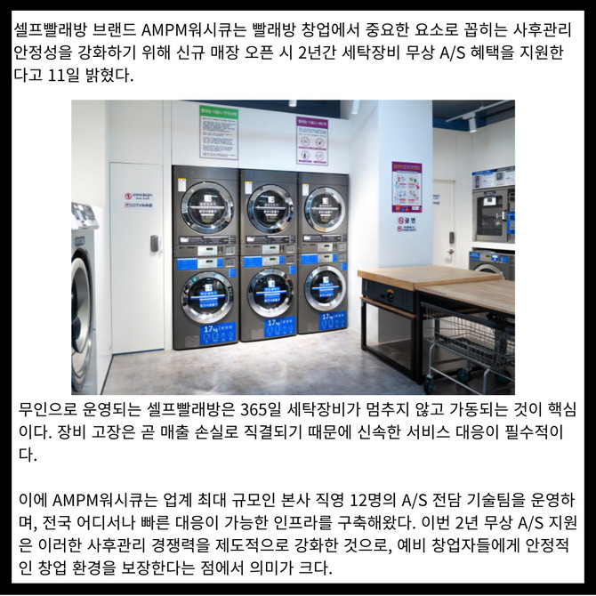 [카드] AMPM워시큐, 빨래방 창업 시 '세탁장비 2년 무상 A/S'로 차별화