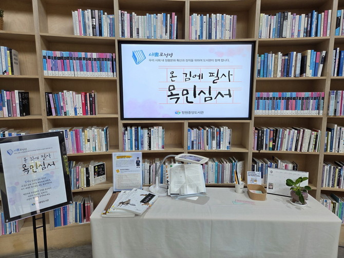 '온 김에 필사'는 지난 9월8일부터 일주일간 창원중앙도서관 1층 로비에서 운영되고 있으며, 시민들은 비치된 책갈피에 청렴의 고전 '목민심서'를 직접 필사하면서 청렴의 의미를 되새길 수 있다.