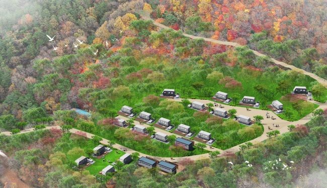 캠핑장은 약 4800㎡ 부지에 카라반 21대를 배치하고, 각 사이트마다 주차 공간과 테이블을 마련한다. 또 정통 캠핑을 선호하는 이용자를 위해 대형 텐트 사이트 1곳도 함께 조성된다. 주변 기존 임도를 활용해 산책로로도 연계해, 자연 속에서 다양한 힐링 활동이 가능하도록 했다.