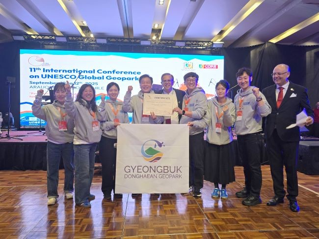 [프라임경제] 영덕군은 지난 8일부터 12일(현지 시각) 칠레 테무코에서 열린 제11회 세계지질공원네트워크(GGN) 총회에서 관내 11개 지질명소가 포함된 경북동해안지질공원이 '유네스코 세계지질공원 정회원 인증서'를 받았다고 밝혔다.