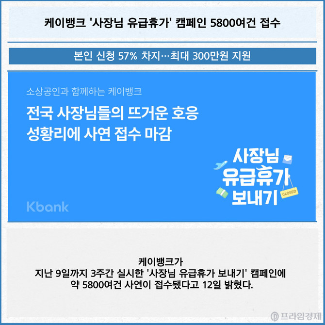 [카드] 케이뱅크 '사장님 유급휴가' 캠페인 5800여건 접수