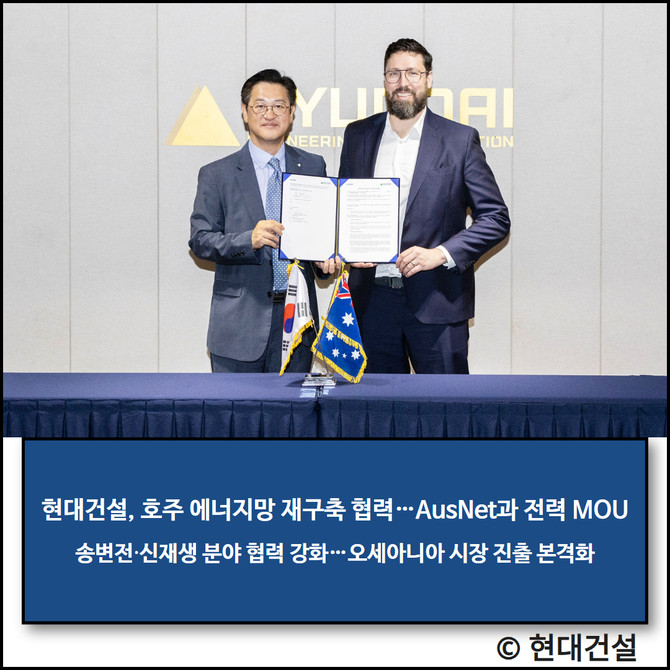 특히 호주 정부의 'Rewiring the Nation' 정책에 발맞춰 국가 전력망 재구축 사업과 넷제로 2050 전략이 본격화하는 가운데, 현대건설은 초격차 시공 능력과 재무 경쟁력을 기반으로 설계·조달·시공(EPC) 중심의 다양한 협력을 확대할 방침이다.