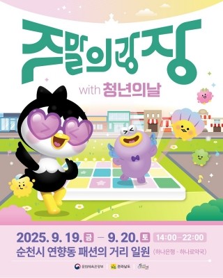 순천시(시장 노관규)가 오는 19일부터 20일까지 연향동 패션의거리 일원에서 '도심 해방로드, 주말의 광장(젊은이들의 해방구)'을 마련했다.