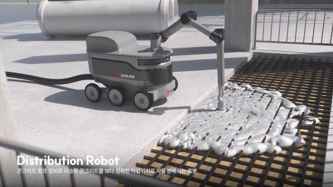 특히 플랜트 등 넓은 면적의 대단위 평탄 작업 타설 공정에서 효율적인 운용이 가능하도록 설계됐다. 수작업으로 진행하던 콘크리트 분배 작업을 완전히 대체할 수 있을 것으로 기대를 모으고 있다.