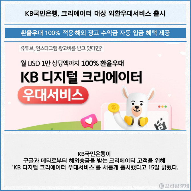 [카드] KB국민은행, 크리에이터 대상 외환우대서비스 출시