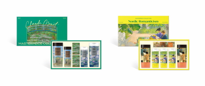 '데일리 12호'와 '낭만' 선물세트는 세계적인 화가 클로드 모네와 칼 라르손의 명화를 담은 마스터피스 컬렉션으로 욕실 공간에 고급스러운 감성을 더해준다. 케라시스 데미지 클리닉 단백질 샴푸와 샤워메이트 내추럴 유자 바디워시 등의 알찬 구성에 1만원대의 합리적인 가격이 더해져 선물을 주고받기 부담이 없다. 특히 선물세트의 쇼핑백과 케이스를 일체화해 불필요한 쓰레기 배출을 줄여준다. 데일리 12호는 가까운 대형마트에서 만나볼 수 있으며, 낭만 선물세트는 쿠팡에서 만나볼 수 있다.