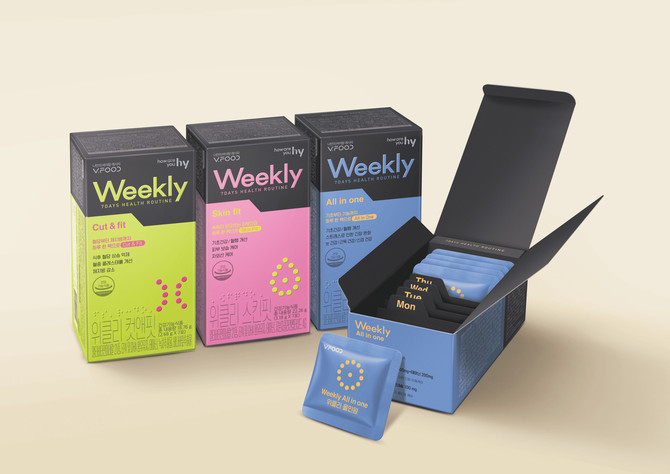 hy는 '브이푸드 위클리 3종(△올인원 △스킨핏 △컷앤핏)'을 출시한다고 15일 밝혔다. 일·월 단위가 주를 이루던 건강기능식품 시장에 '주(週) 단위 정기배송'을 도입해 소비자 선택권을 넓힌다는 계획이다.