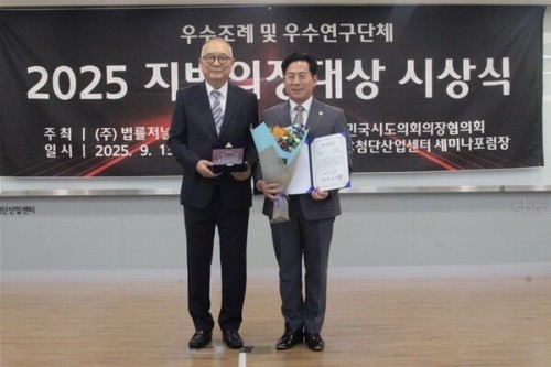 강현태 여수시의회 의원이 지난 13일 서울 DMC첨단산업센터 세미나포럼장에서 대한민국 공직·법조·전문직 입직 분야를 대표하는 언론사인 ㈜법률저널이 주관한 '2025 지방의정대상' 입법활동 기초의회 부문 최우수상을 수상했다.