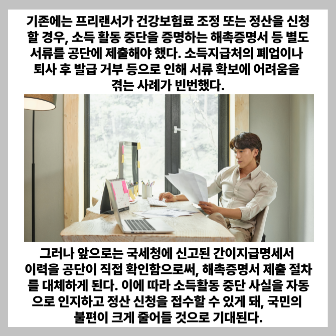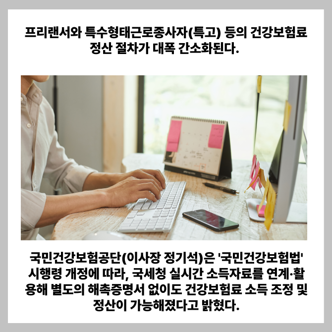 [프라임경제] 프리랜서와 특수형태근로종사자(특고) 등의 건강보험료 정산 절차가 대폭 간소화된다.