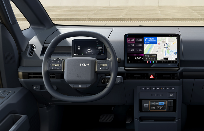 올인원 디스플레이 2는 △택시기사용 애플리케이션(카카오 T) △내비게이션 앱(카카오내비) △미터 앱(티머니모빌리티·이동의즐거움) 등 택시영업에 필수적인 기능을 12.9인치 대화면 디스플레이에 통합해 제공하는 PV5 택시 전용 옵션이다.