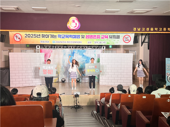 최문숙 고성군 건강증진과장은 "이번 뮤지컬을 통해 학생들이 서로를 존중하는 마음과 올바른 관계 맺기의 중요성을 다시 한번 생각해보는 계기가 됐길 바라며, 안전하고 즐거운 학교생활을 이어가길 기대한다"고 말했다.