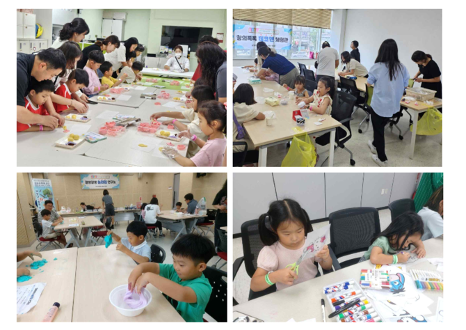 이번 행사는 '우리동네 오감발전소'라는 주제로 △슬라임 만들기 △슈링클 열쇠고리 만들기 △데코덴 오르골 꾸미기 △쿠키 만들기 △팝콘 시식 △고성공룡세계엑스포 포토존 등 오감을 자극하는 체험 부스를 운영해 참가자들로부터 큰 호응을 얻었다.