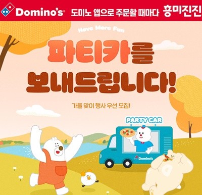 도미노피자가 10월 가을맞이 축제와 경찰·소방관 등 국가를 위해 헌신하는 이들을 위한 '파티카' 사연 모집을 진행한다.
