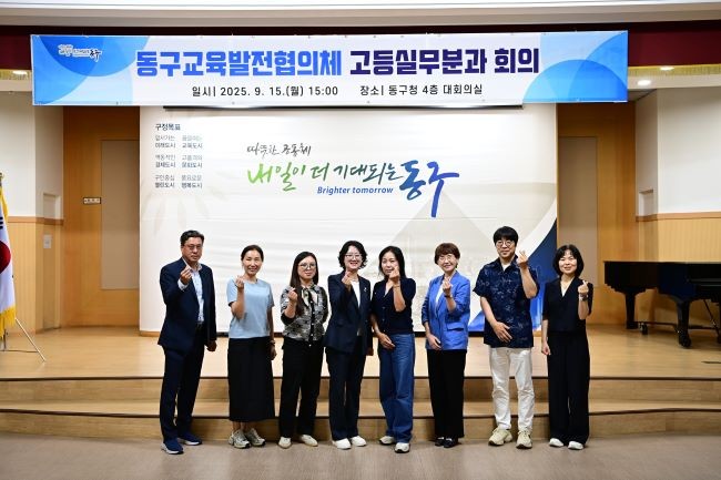 이날 회의에서는 동구 관내 고등학교 운영(부)위원장, 시교육청 장학관, 구청 관계 공무원 등 10여 명이 참석했으며, 지역 고등학교 교육환경 개선 및 학력 격차 해소 방안, 진로진학센터 맞춤형 지원방안 등 다양한 현안을 함께 논의했다.