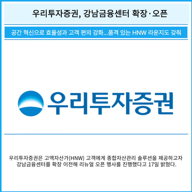 [카드] 우리투자증권, 강남금융센터 확장·오픈