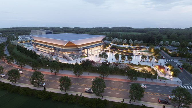 총사업비 1075억원(국비 269억, 도비 313억, 시비 493억)을 투입해 4만2495㎡ 부지에 연면적 1만6848㎡, 지하 1층~지상 3층, 관람석 6000석 규모로 조성되며, 2027년 6월 준공을 목표로 한다.