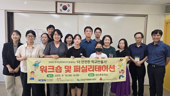 고성군(군수 이상근)은 9월16일 삼산초등학교에서 학교 관계자와 안전점검 및 실태조사단 20명이 참석한 가운데, 도우미(퍼실리테이션) 기법을 활용한 2025 한국남동발전과 함께하는 '더 안전한 학교만들기 워크숍'을 진행했다고 18일 밝혔다.