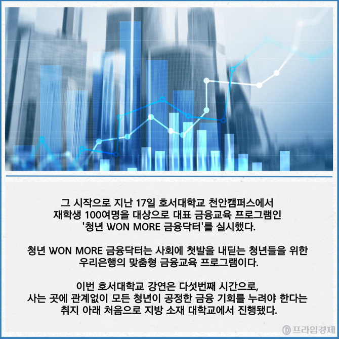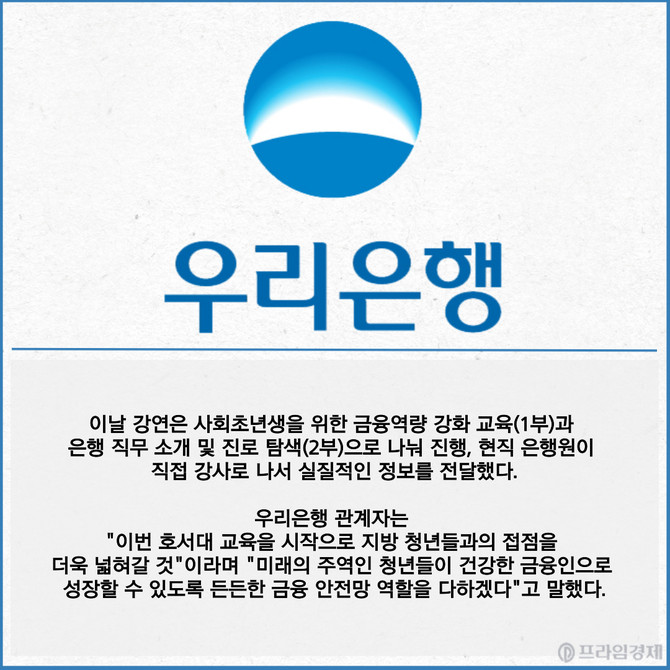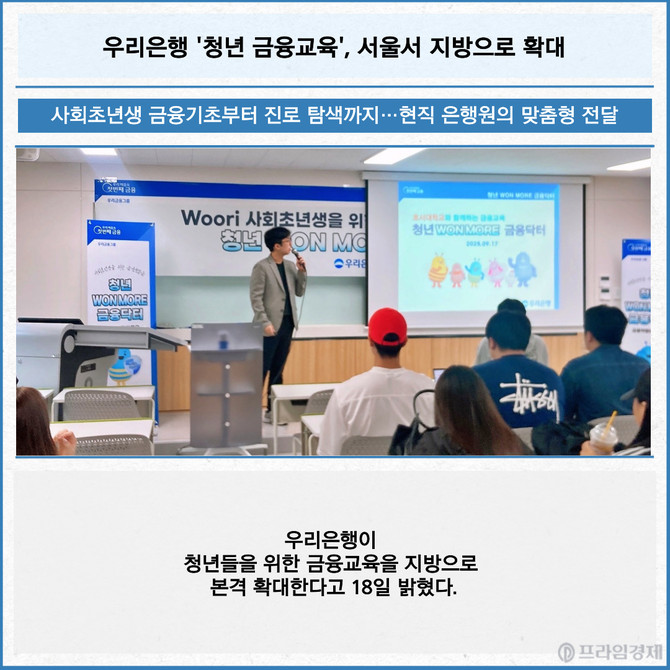 [프라임경제] 우리은행이 청년들을 위한 금융교육을 지방으로 본격 확대한다고 18일 밝혔다.