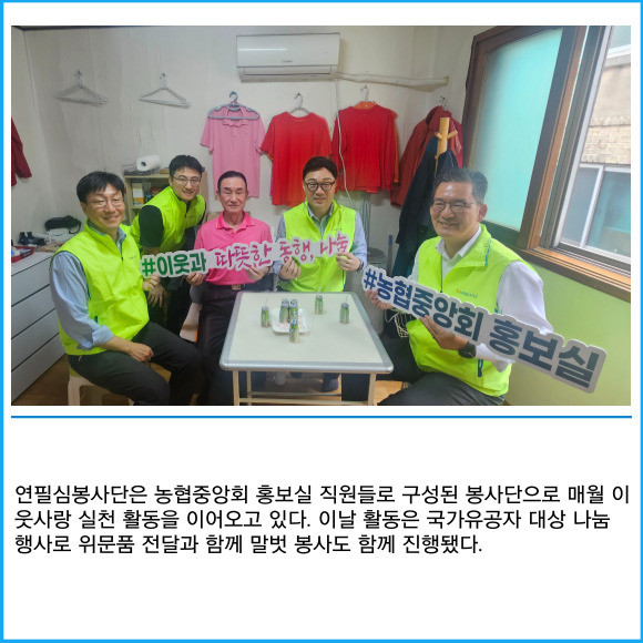 [프라임경제] 농협중앙회 '연필심(心)봉사단'이 서울 종로구 교남동 주민센터 관내 보훈가정을 방문해 국가유공자와 유가족에게 위문품을 전달했다고 18일 밝혔다.
