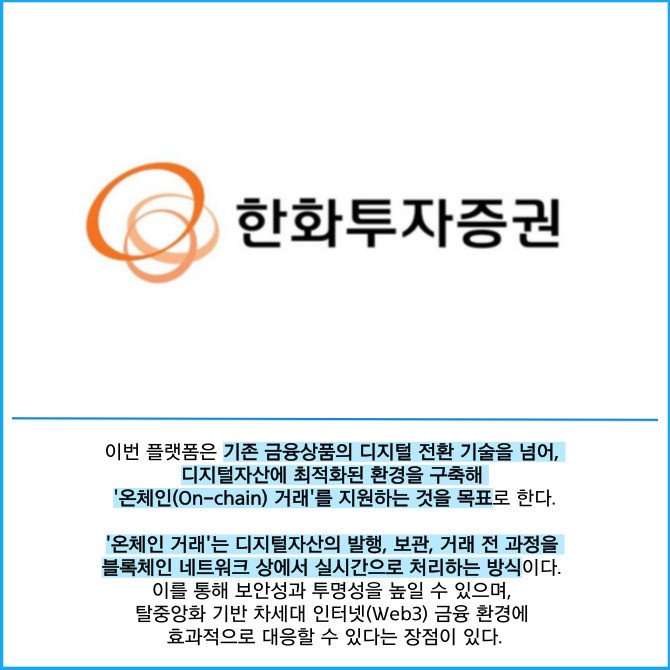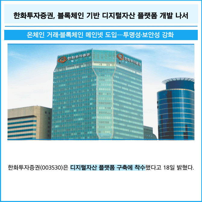 [카드] 한화투자증권, 블록체인 기반 디지털자산 플랫폼 개발 나서