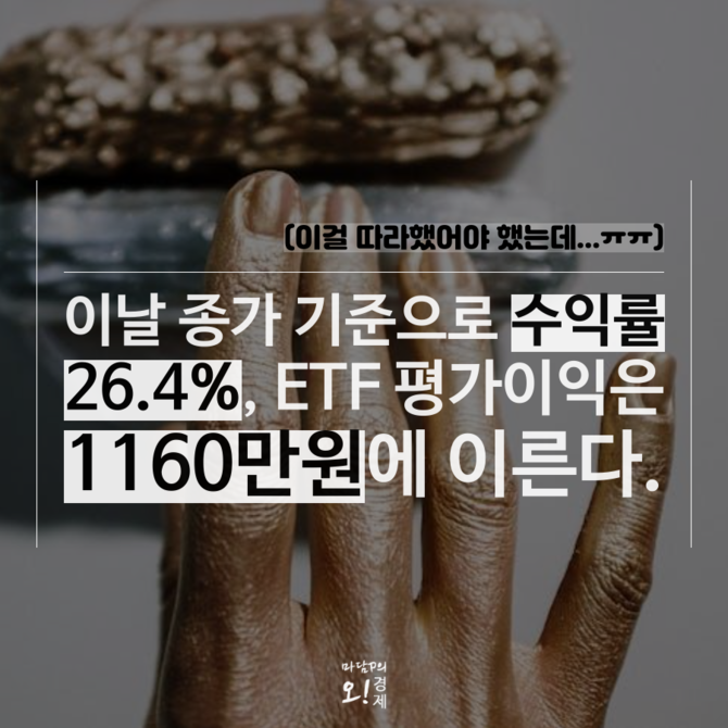 이 과정에서 9월 18일 종가 기준 평가이익은 1160만원, 수익률은 26.4%에 달했다. 같은 날 코스피 지수는 3461.30 포인트로 마감하며 역대 종가 최고치를 기록했다.