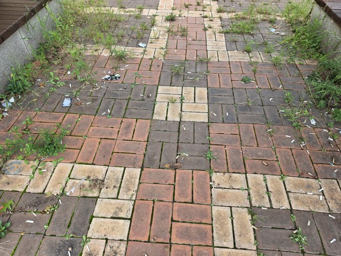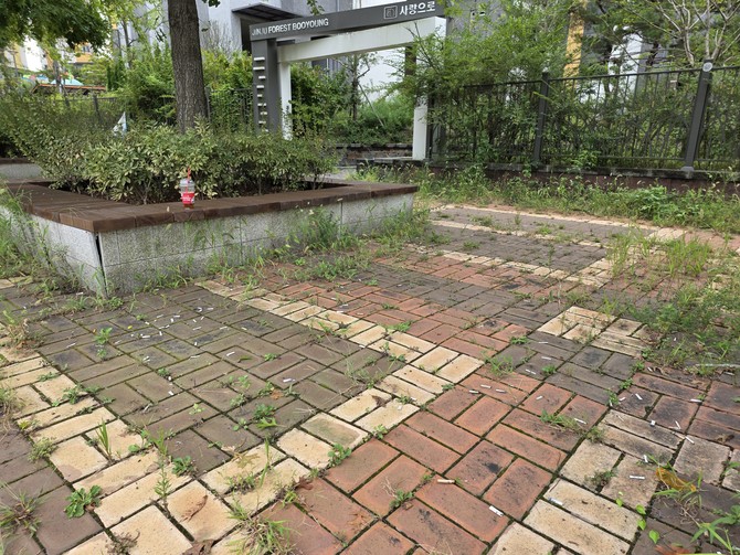 [프라임경제] 진주시 충무공동 소재 부영 '사랑으로' 아파트 옆문 주변 보행공간이 담배꽁초와 쓰레기로 방치돼 있다.