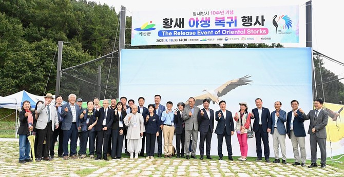 예산군은 지난 10년간 '황새의 수도' 브랜드를 확립하고 5개 황새마을을 중심으로 친환경 농업과 서식지 복원을 추진했다. 그 결과 야생 황새 240마리 이상이 확인됐고, 총 122마리를 방사하는 성과를 거두며 국내 대표적인 황새 복원 지역으로 자리매김했다.