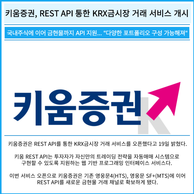 [카드] 키움증권, REST API 통한 KRX금시장 거래 서비스 개시