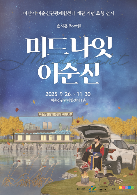 충남 아산시(시장 오세현)가 임시 개관 중인 이순신관광체험센터 '여해나루' 개관(9월26일 오후 3시 정식개관)을 기념해 11월30일까지 기획 전시 '미드나잇 이순신'을 개최한다고 밝혔다. 이번 전시는 대한민국의 대표적 디지털 아티스트이자 일러스트레이터 손지훈(Bootjil) 작가의 작업을 통해 새로운 시선으로 바라보는 이순신을 만날 수 있는 자리이다.