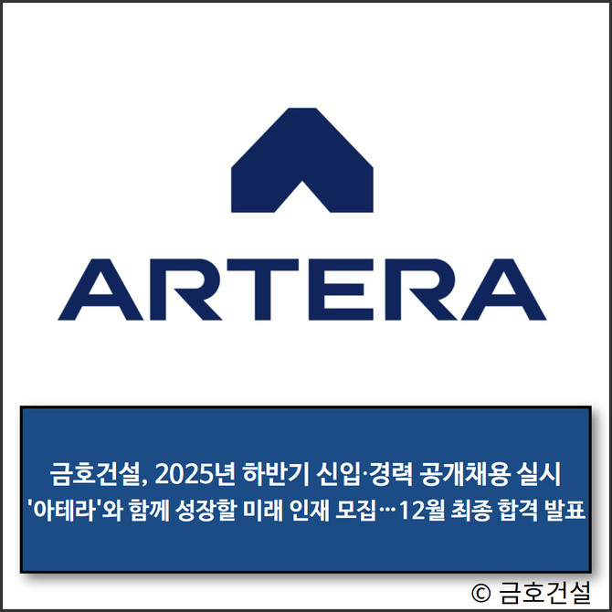 금호건설(002990)이 2025년도 하반기 신입 및 경력사원 공개채용을 시작한다. 상반기에 이어 하반기에도 두 자릿수 규모의 공개채용을 진행하며, 주택 사업 역량 강화와 미래 성장 동력 확보에 나선다.