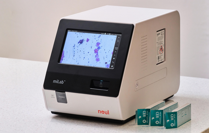 '마이랩 CER'은 자궁경부 세포병리검사를 자동화하는 AI 기반 진단 솔루션으로 샘플 전처리부터 이미징, AI 분석까지 통합 수행하며 2024년 WHO-UNITAID 보고서에서 로슈(Roche), 홀로직(Hologic)과 함께 글로벌 Top3 제품으로 권고된 바 있다.