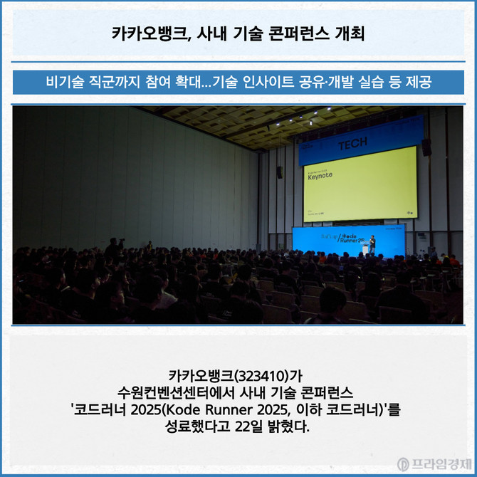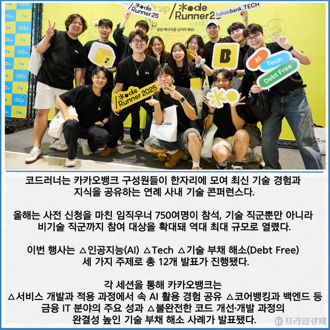 [프라임경제] 카카오뱅크(323410)가 수원컨벤션센터에서 사내 기술 콘퍼런스 '코드러너 2025(Kode Runner 2025, 이하 코드러너)'를 성료했다고 22일 밝혔다.