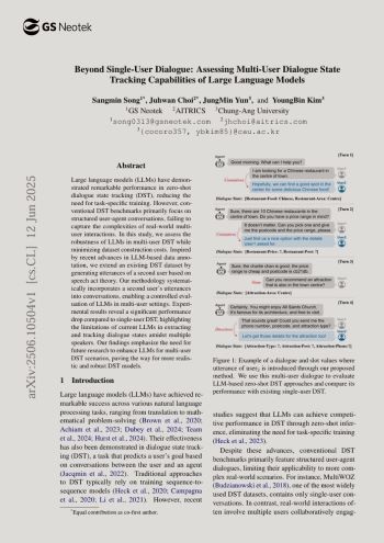 이번에 채택된 논문은 '단일 사용자 대화를 넘어: 대규모 언어모델의 다중 사용자 대화 상태 추적 성능 평가'다. 생성형 AI가 실제 서비스 환경에서 마주하는 복수 사용자 응대 상황에 어떻게 반응하고, 대화 상태를 어떻게 유지하는지를 분석한 최초의 체계적 시도 중 하나다.