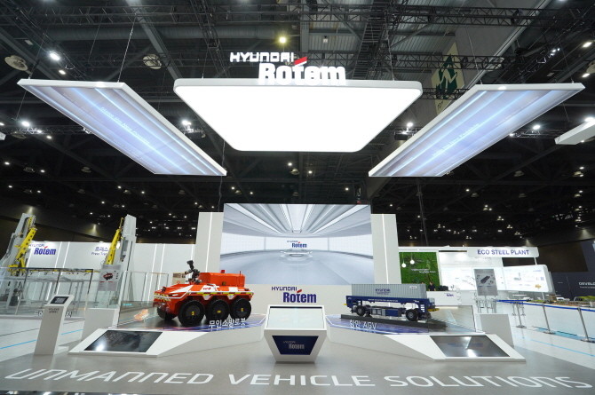 현대로템은 차세대 모빌리티 시장에서 떠오르는 무인화와 전동화, 친환경 기술을 주제로 부스를 꾸려 차별화된 제품군을 소개한다. 먼저 무인 모빌리티에 특화된 전시 공간에는 무인소방로봇과 항만무인이송차량(AGV·Automated Guided Vehicle) 등 인공지능(AI) 기술이 접목된 차량이 관람객을 맞이한다.