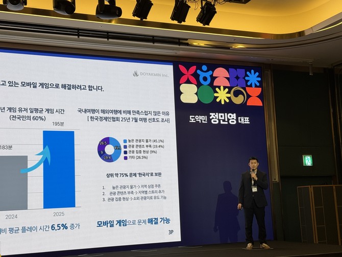 먼저 정민영 도약민 대표는 위치 기반 점령형 게임을 기반으로 한 서비스는 게임과 지역 상권을 연결해 젊은 관광객의 체류 경험을 확장시키는 전략을 선보였다. 사용자는 지정된 건물을 게임 속에서 점령하고, 실제 상점에서 사용할 수 있는 쿠폰을 획득함으로써 현실과 가상의 경계를 넘나드는 이중 경험을 얻게 된다.