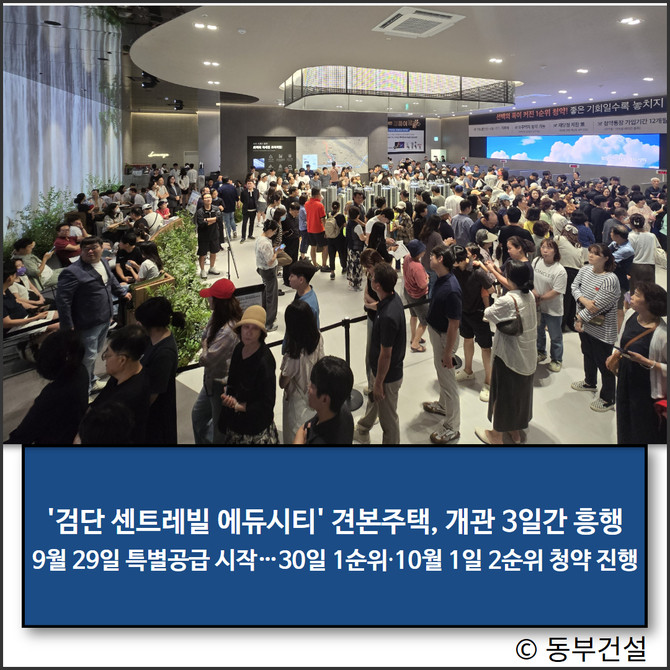 동부건설에 따르면 검단 센트레빌 에듀시티의 흥행 배경에는 우수한 입지와 생활 인프라, 대단지 특화 설계, 그리고 센트레빌 브랜드 가치가 종합적으로 작용했다는 분석이다.